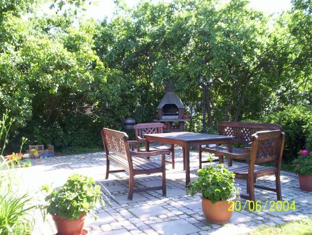 In unserem Garten können Sie unsere schöne Sitzecke mit Grill benutzen. |